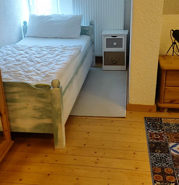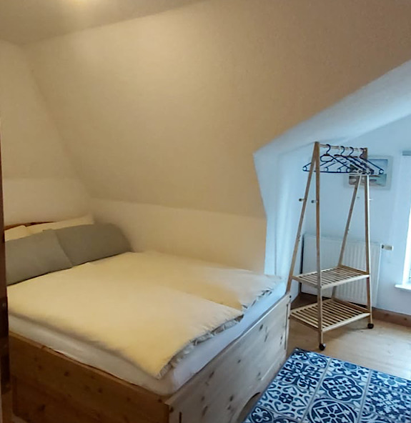 Schlafzimmer oben mit Bett 140 x 200 cm. incl. Bettwäsche