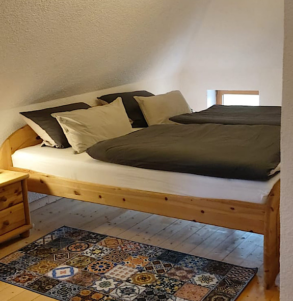Schlafzimmer oben mit Bett 200 x 200 cm, Zusatzbett 90 x 200cm, Kinderbett. incl. Bettwäsche