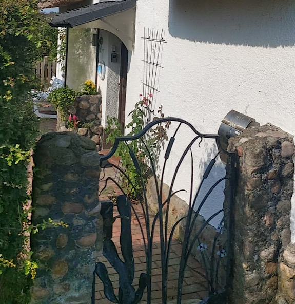 Garten & große Sonnenterrasse mit Weitblick, Gartenmöbel mit Auflagen und Sonnenschirm. incl. Gasgrill mit Gasflasche.